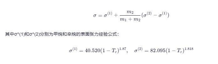 其中σ^(1)和σ^(2)分別為甲烷和辛烷的表面張力經(jīng)驗公式: