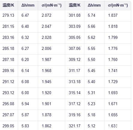 > 表面張力儀系統(tǒng)測定:溫度范圍內(nèi)甲基九氟丁醚的液相密度與表面張力